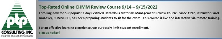 September 14-15, 2022 – CHMM Prep Course – PTP Consulting