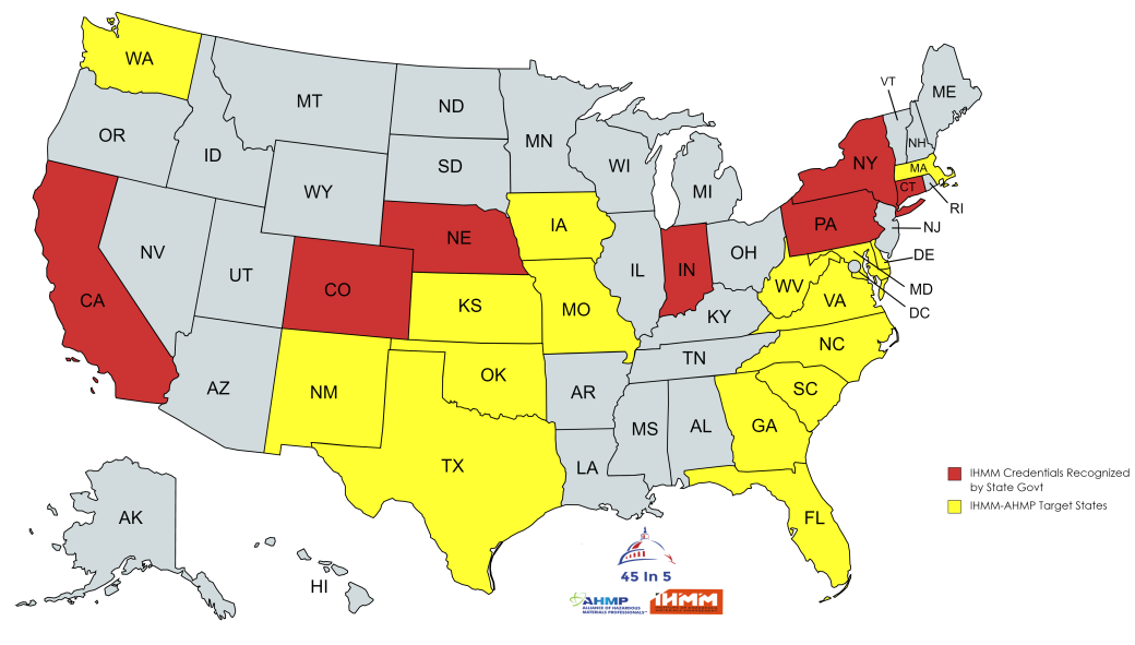 IHMM & AHMP 45 in 5 Project – National Credential Recognition – 21 States Targeted