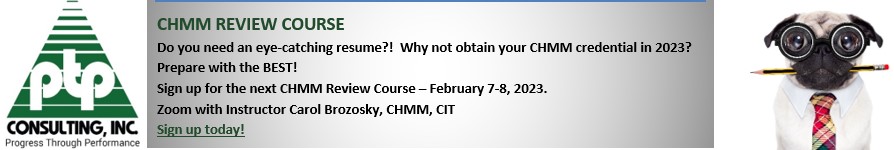 February 7-8, 2023 – CHMM® Examination Prep Course – Online – PTP Consulting