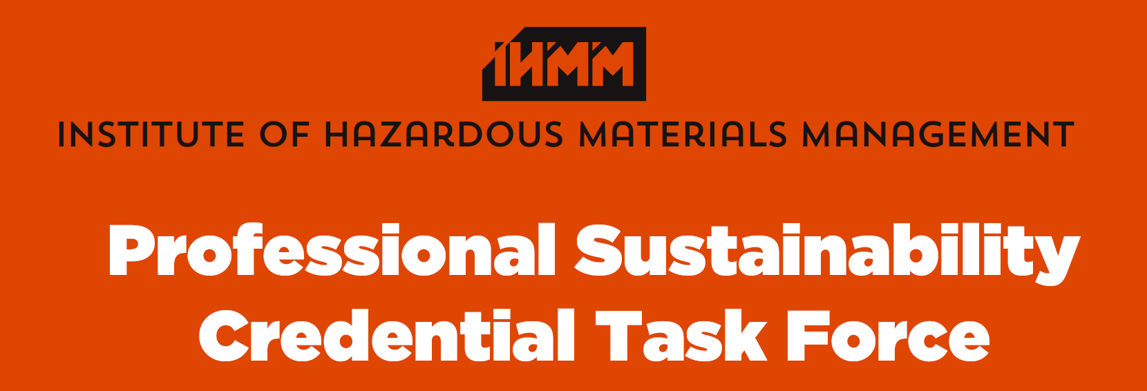 The IHMM Professional Sustainability Task Force, chaired by Mark Bruce, CHMM, CSHM, has started the process of reviewing the landscape of professional certifications focused on sustainability. The role of the task force is to make a recommendation to the IHMM Board about the advisability of creating a stand-alone credential that focuses specifically on sustainability.