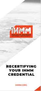 IHMM has a companion organization for which education and training programs are presented and delivered. The Hazardous Materials Society is IHMM’s Professional Association and HMS’ education and training website can be found here. These events are produced independently of IHMM, and their providers have no access to IHMM certification examinations or program information other than that which is publicly available.