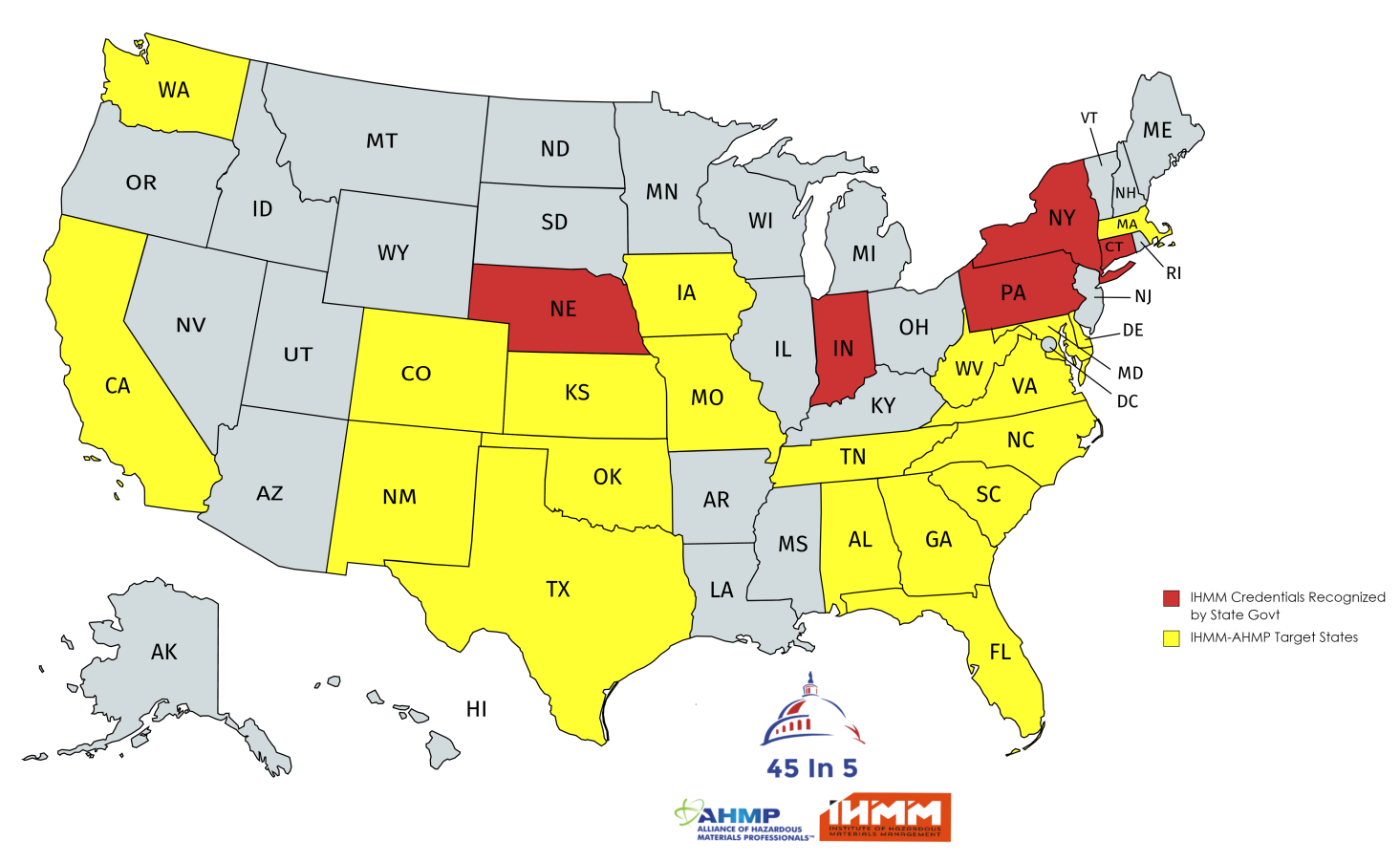 In 2019 Mark Bruce from AHMP and Gene Guilford from IHMM worked on a project to get the Commonwealth of Pennsylvania to recognize the CHMM and CDGT credentials. With Mark’s work on the ground in Pennsylvania, we succeeded.