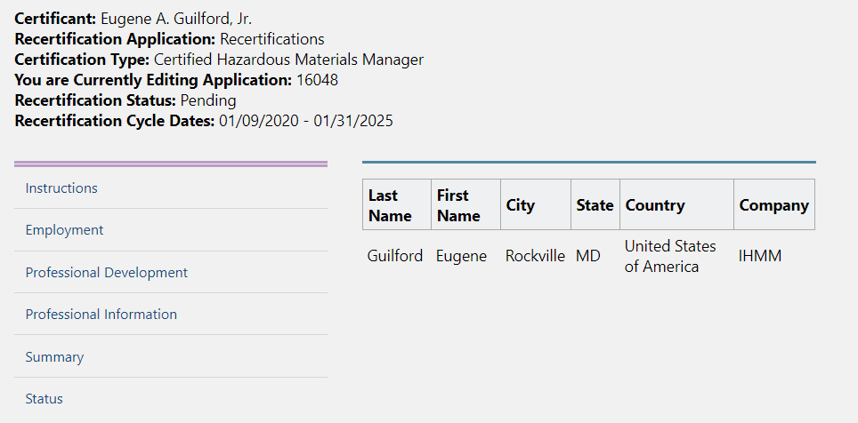 IHMM has a system that allows each certificate to keep track of their CMPs as they are earned. That is what a recertification application is all about and here we will briefly walk everyone through how to do that – even years before your recertification date.