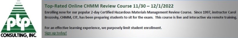 Nov 30-Dec 1, 2022 – CHMM® Prep Course – PTP Consulting