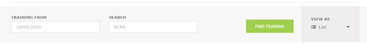 Certificants may type RCRA in the Search box, then click FIND TRAINING. Up will pop a number of programs offered that deal with RCRA.