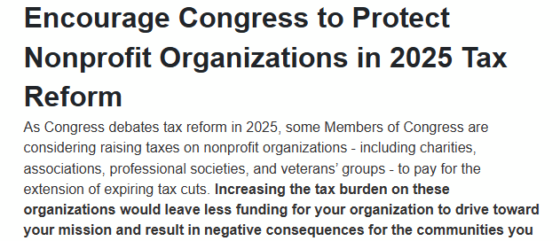 Encourage Congress to Protect Nonprofit Organizations in 2025 Tax Reform [...]