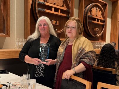 Pictured at left is June Brock-Carroll, CHMP, [left] being presented with IHMM’s Outstanding Distinguished Service Award by Board Chair Melissa Hamer, Esq., CHMM, [right] during a special IHMM Board dinner held in June’s honor as she concludes her remarkable service on the IHMM Board.